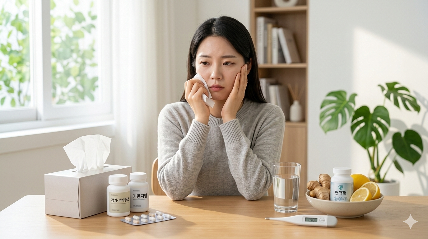 증상이 2주 이상 지속된다면 급성 기관지염이나 부비동염(축농증)을 의심해야 합니다. 감기 이후 약해진 기관지에 2차 염증이 생겼거나 기존 비염이 악화되었을 수 있습니다. 가래가 안 멈출 때는 단순 후유증으로 치부하기보다 염증이 지속되는 근본 원인인 면역력 자체를 살펴야 합니다. 😟