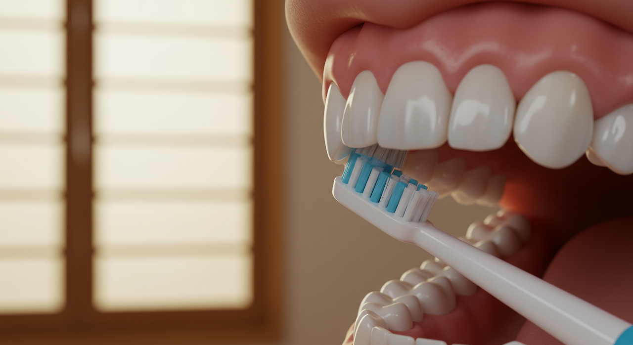- 잇몸선 관리: 칫솔모를 잇몸선에 45도 각도로 대고 부드럽게 진동을 주듯 닦아주면 잇몸 속 세균막(플라크) 제거에 효과적입니다. (바스법 변형)