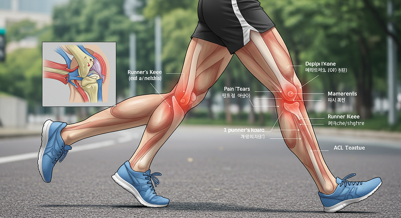 - 장경인대증후군 (ITBS): 무릎 바깥쪽에 통증이 나타납니다. 달릴 때 장경인대가 허벅지뼈와 마찰을 일으켜 발생합니다.