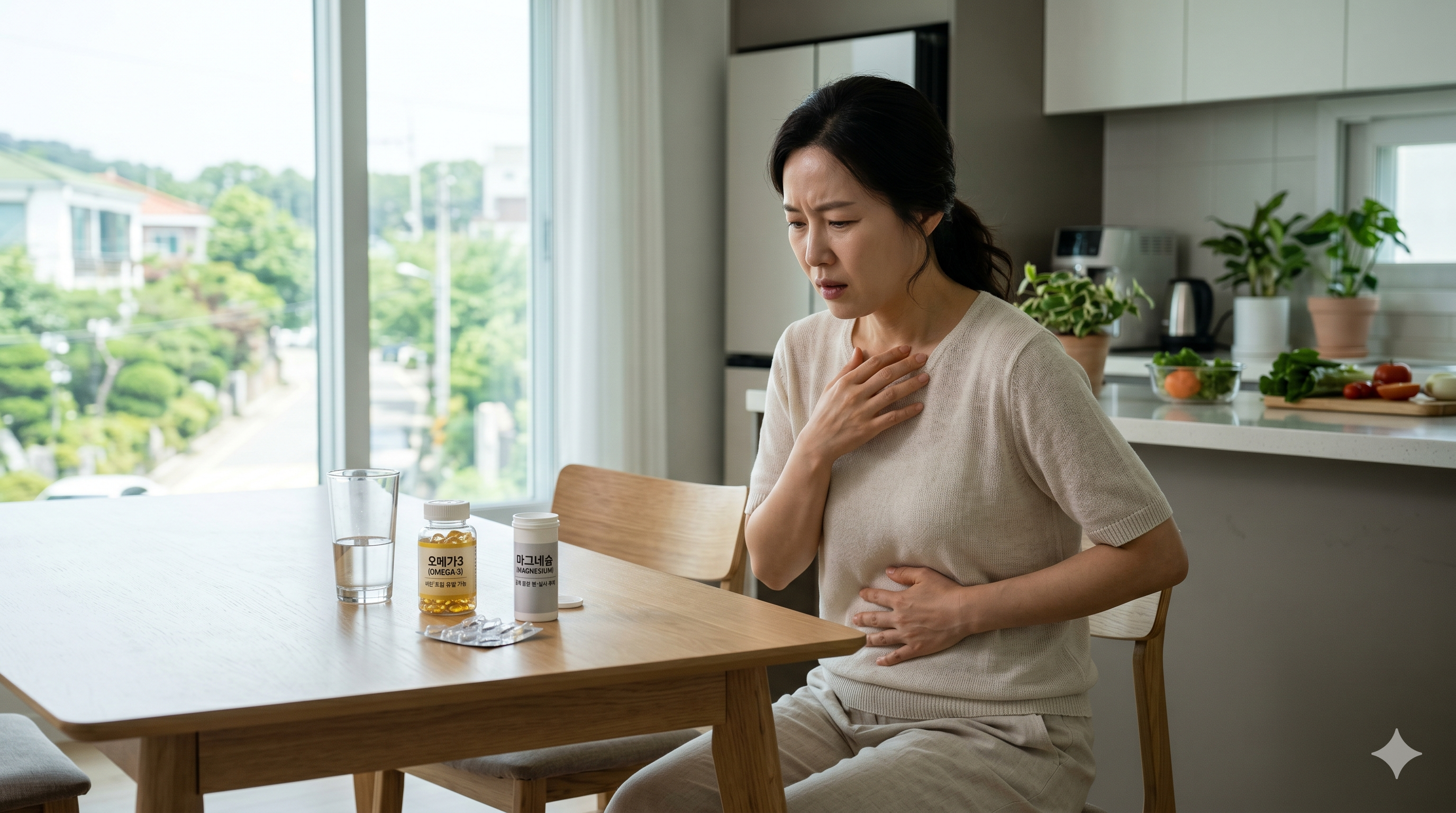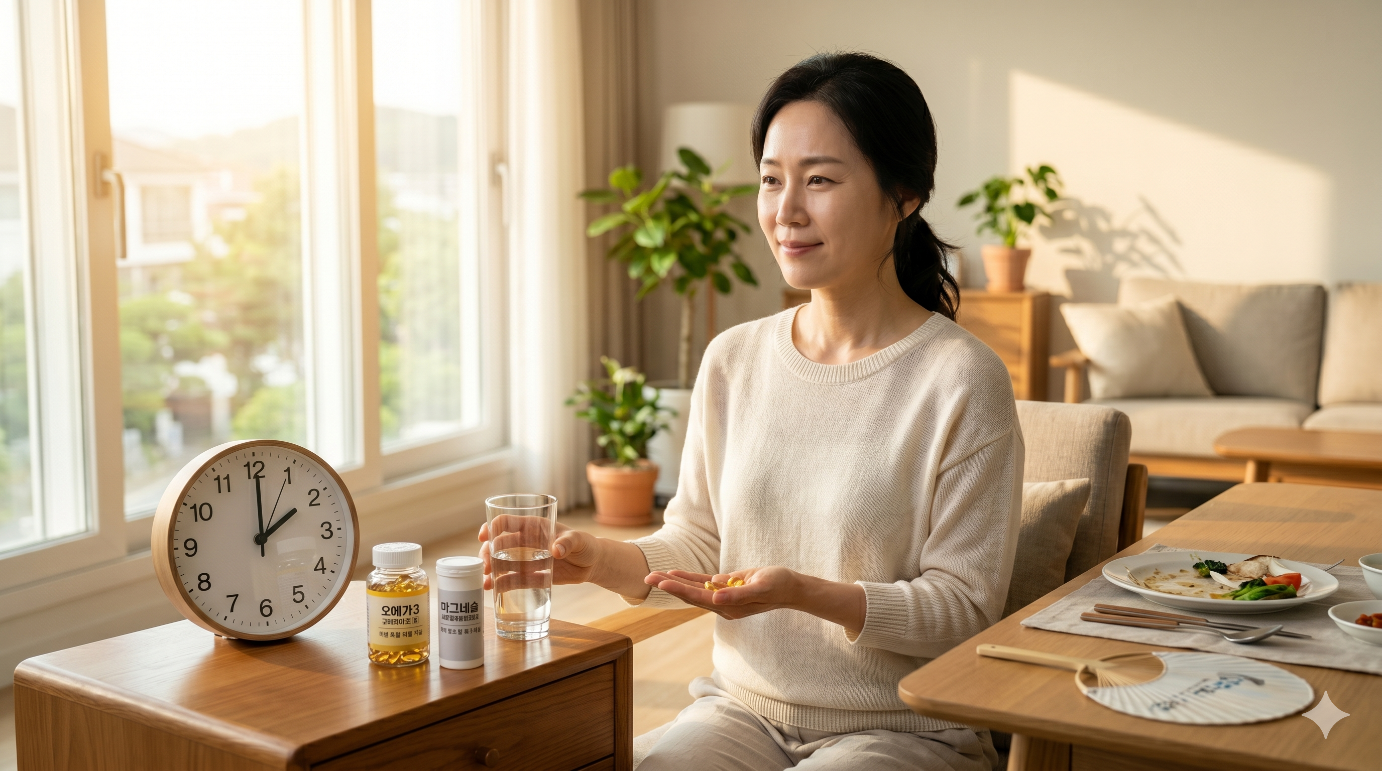 마그네슘 오메가 3 식후 복용, 속 쓰림과 설사 잡는 ‘골든타임 15분’의 비밀 💊