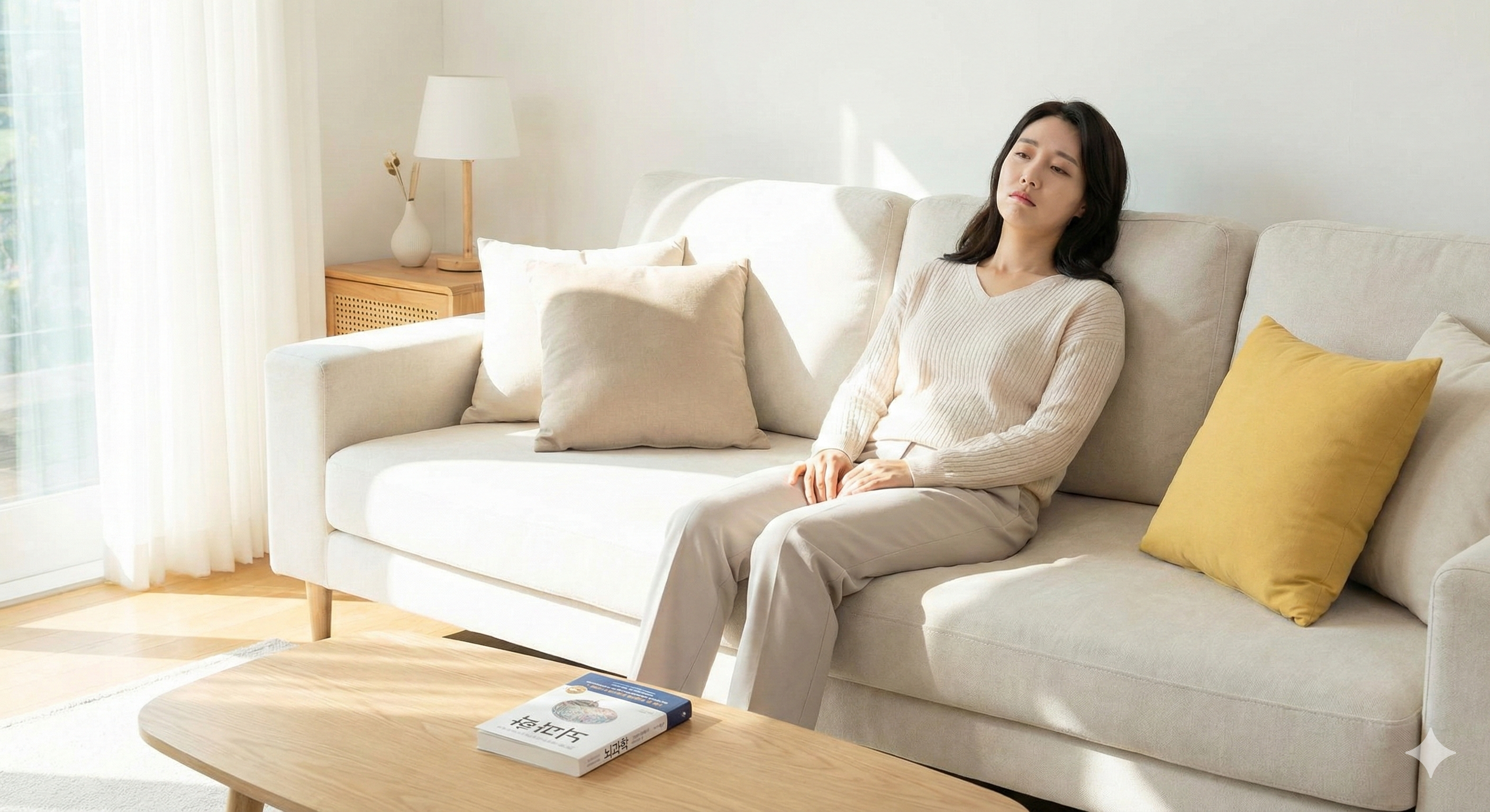 복용 시간 조정과 함께 반드시 흉추 신전(등 펴기) 운동을 병행해 보세요. 흉곽이 열리면 자율신경계가 안정되어 알로프레그난올론 감소로 인한 예민도가 낮아집니다. 만약 스트레스 관리가 어렵다면 3단계 복식 호흡법 가이드를 참고하여 신경계를 진정시키는 훈련을 매일 10분만 실천해 보시길 적극 권합니다.