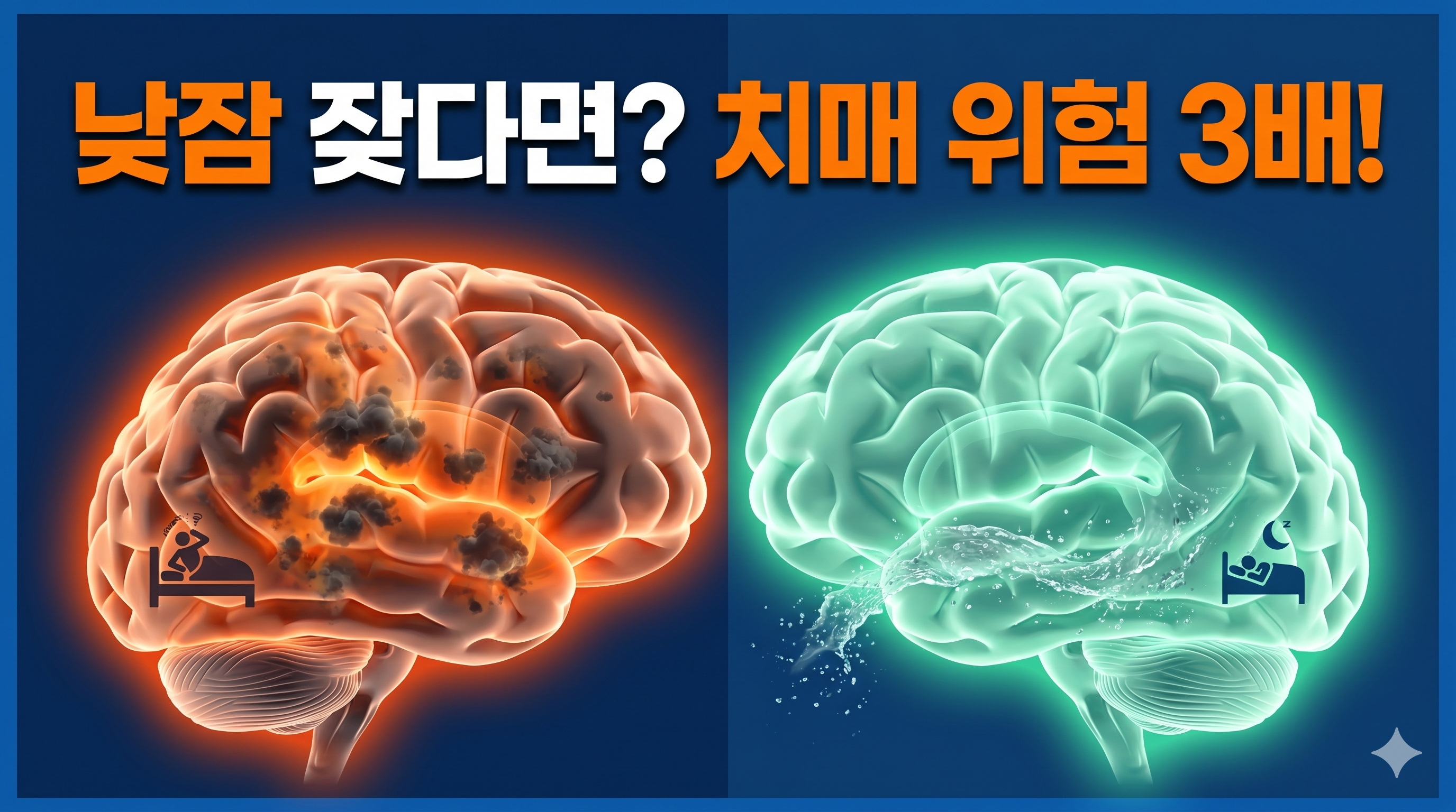 특히 불면증 환자가 피로를 이기지 못하고 낮잠을 자주 자는 경우, 신경퇴행성질환 발병 위험은 무려 2.85배까지 급증했습니다. 낮잠으로 야간 수면 압박을 떨어뜨려 밤에 더 못 자게 되는 악순환이 뇌를 파괴하는 것입니다.