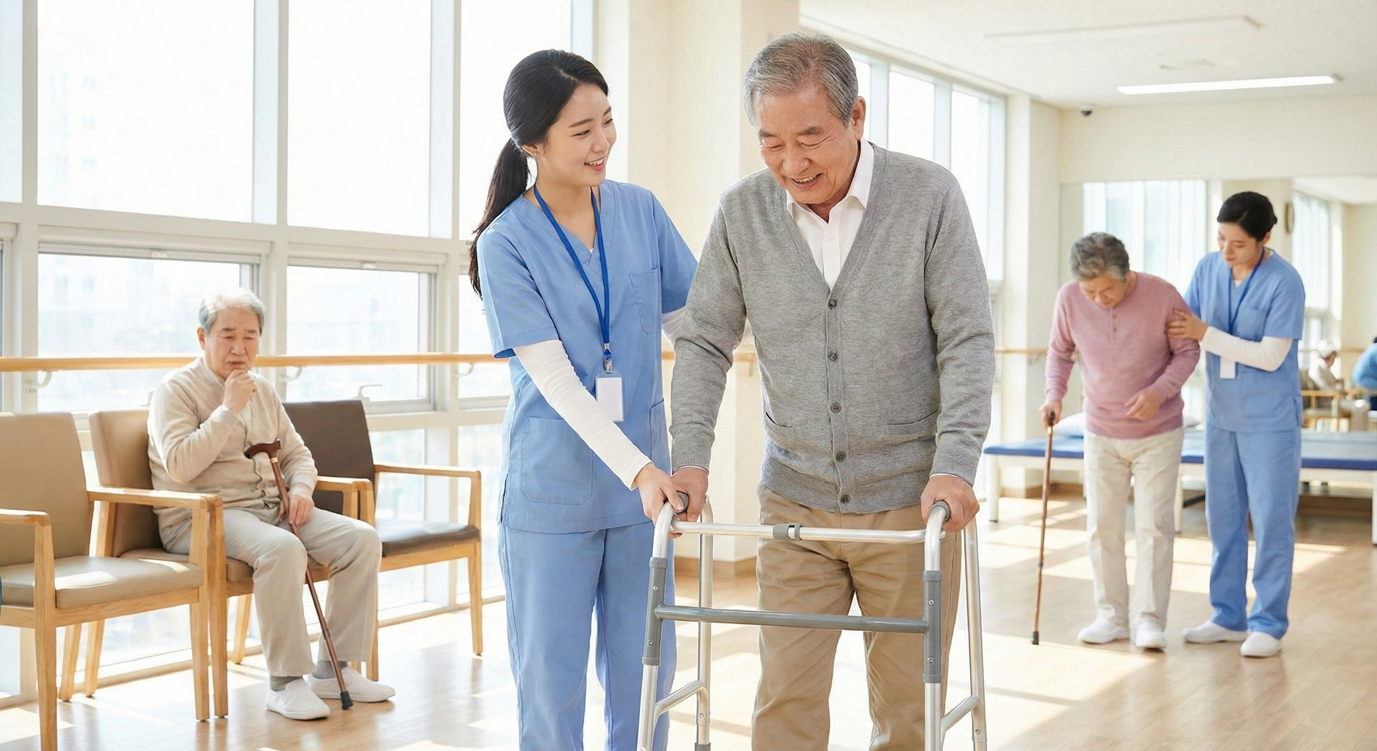 통증이 두려워 움직이지 않으면 관절이 굳는 '강직' 현상이 옵니다. 반대로 조급함에 무리하게 오래 걸으면 염증이 재발합니다. 고령자 걷기 훈련의 핵심은 '속도'가 아닌 '꾸준함'입니다. 지팡이나 워커를 너무 빨리 떼는 것은 낙상이라는 치명적인 위험을 부를 수 있으니 절대 금물입니다. 🛑