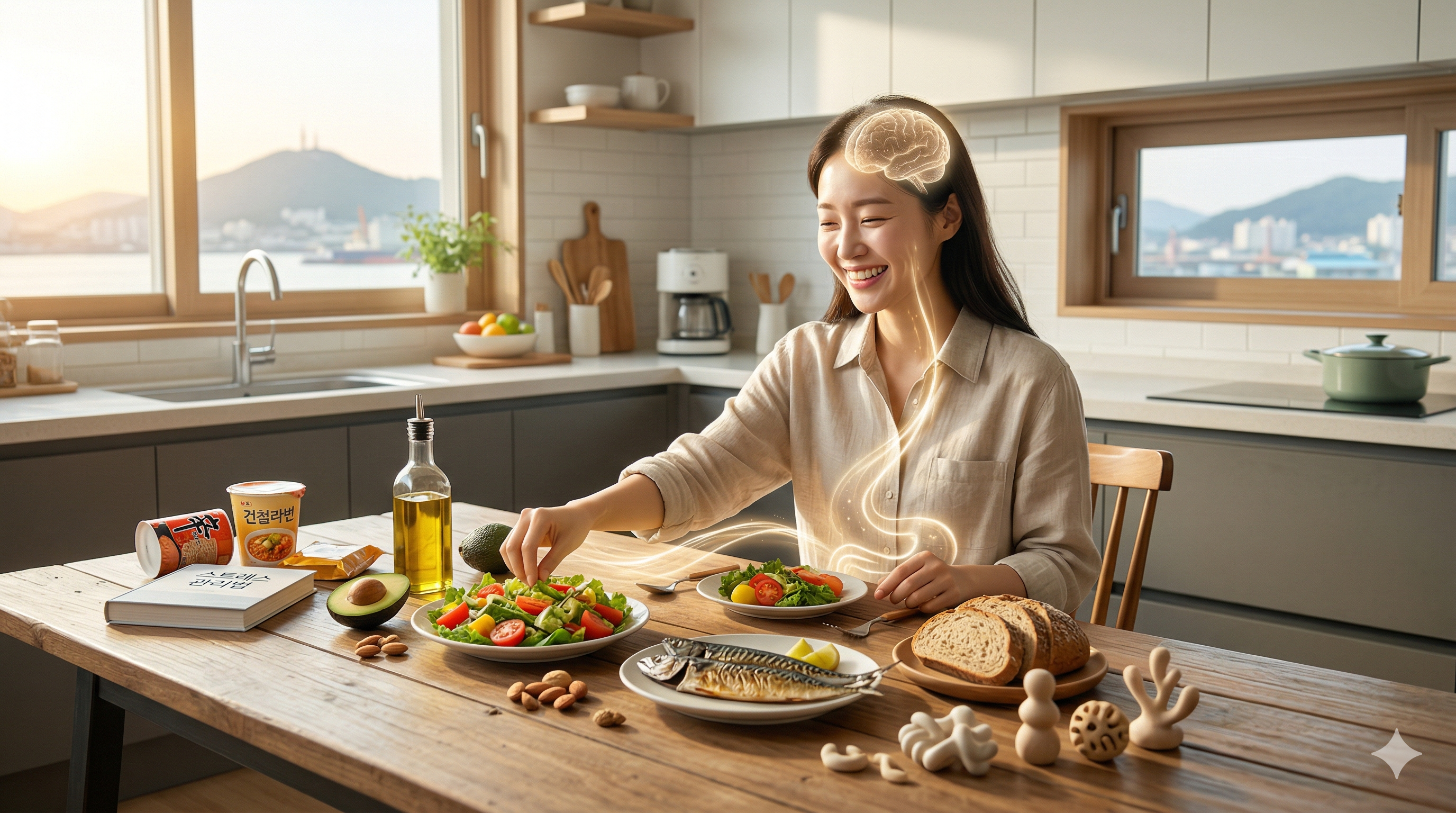 - ③ 나이와 증상에 맞춘 조리법: 노년기에는 소화 기능이 떨어지므로 식재료를 삶거나 갈아서 부드럽게 조리하고, 김치·된장·요구르트 같은 발효식품으로 유익균을 지속 투입해야 합니다.