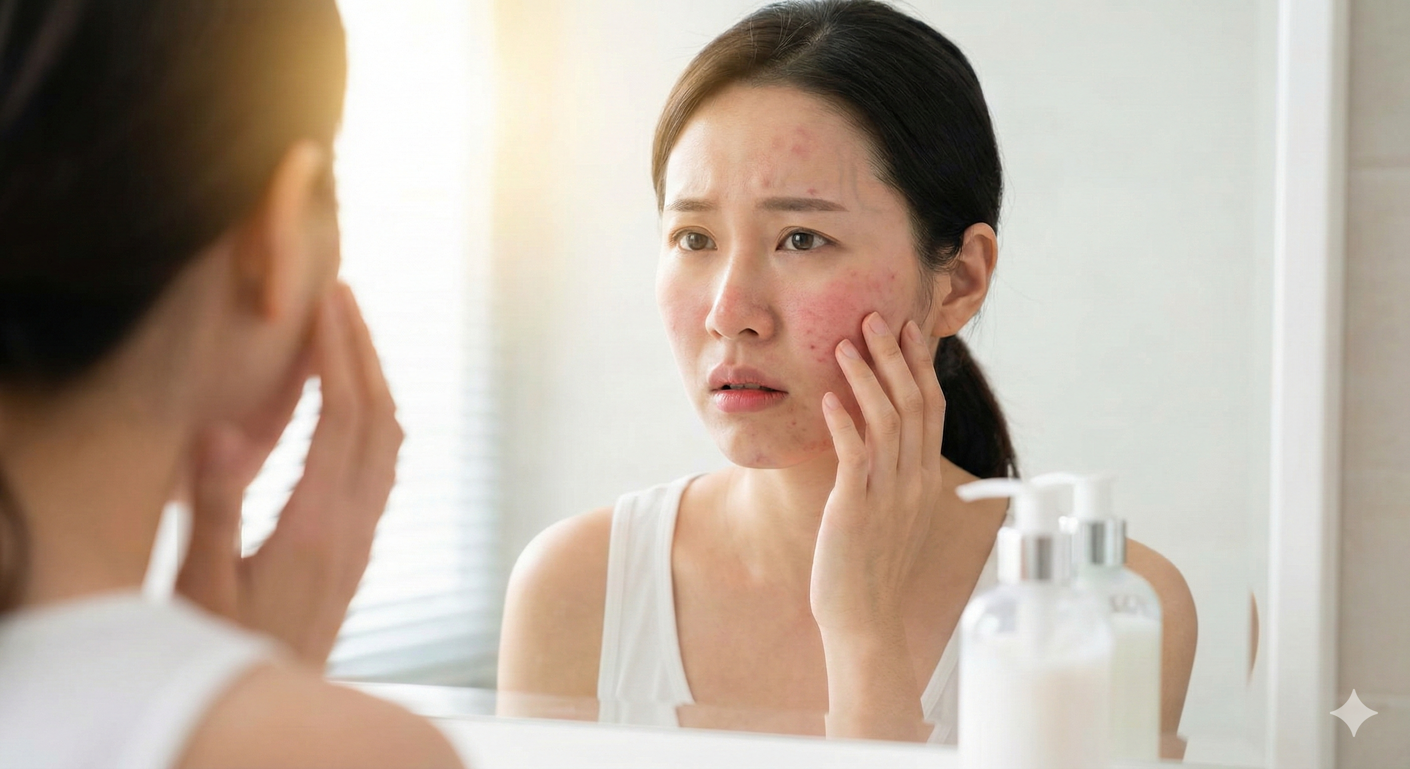 피부 장벽이 무너진 모습을 걱정하는 여성