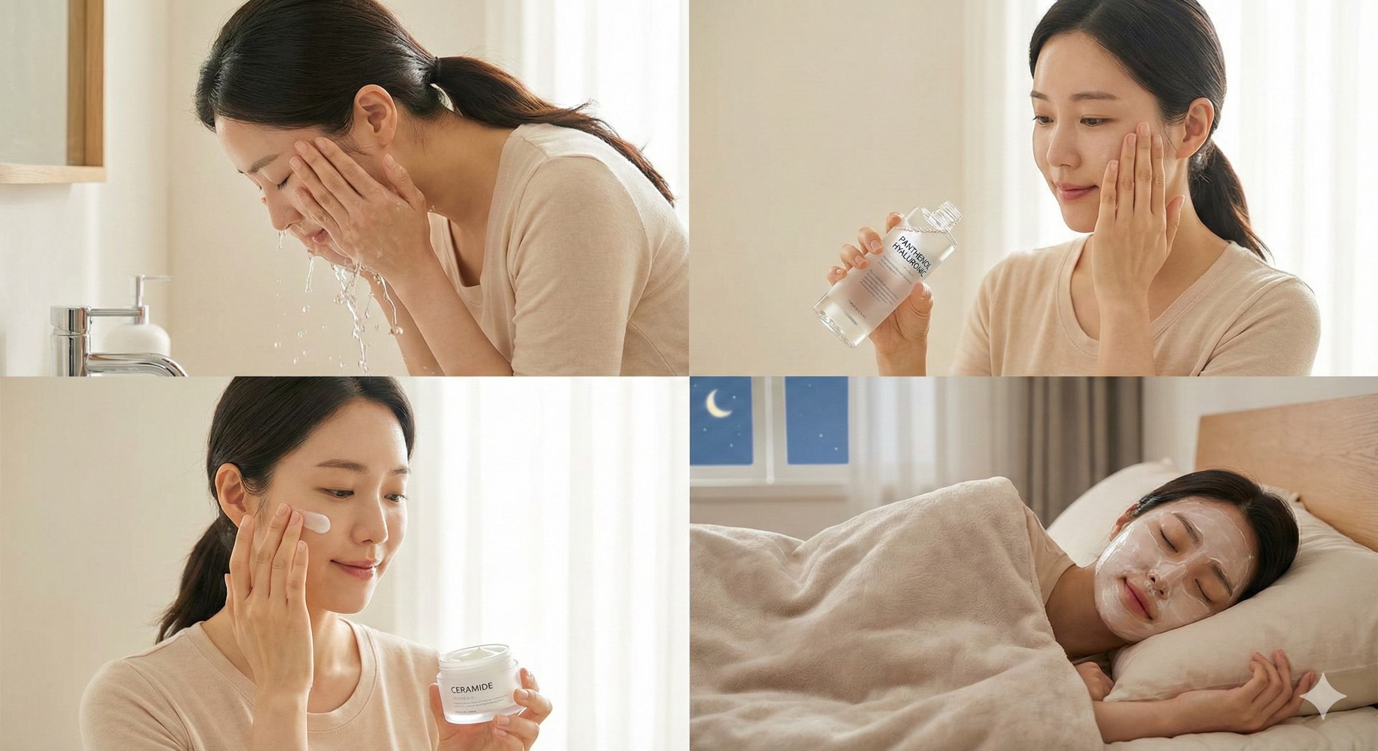 4️⃣ 밀폐 보습: 잠들기 전 꾸덕한 보습제를 도톰하게 발라 수분 보호막을 씌워주세요. 🌙