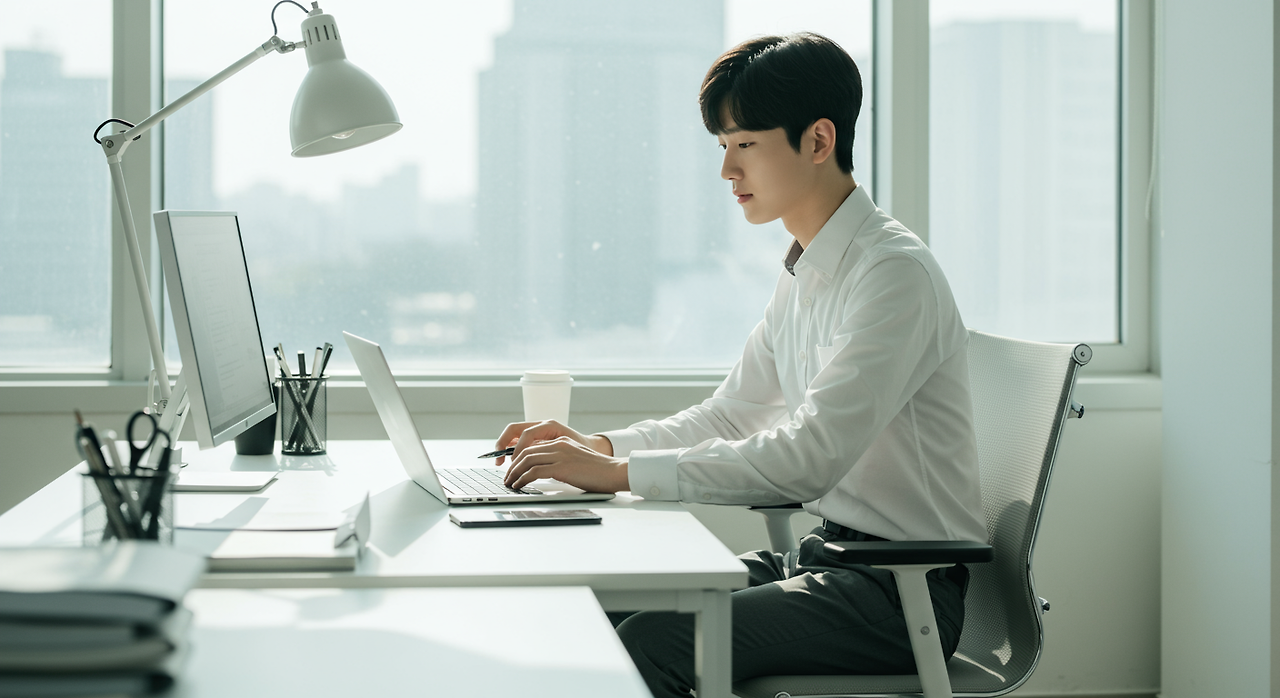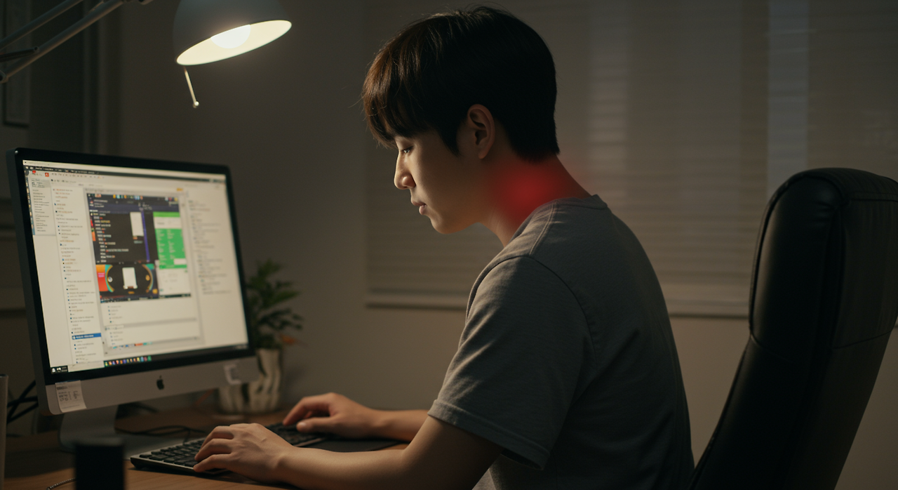 루틴화: 30분마다 60초 리셋(기지개·가슴 펴기·목 좌우 3회) 알림을 걸어요.
